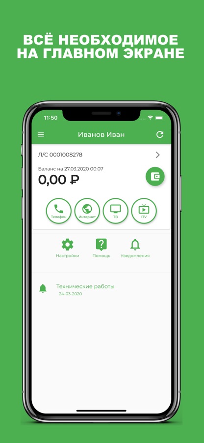 — получать push-уведомления о низком балансе лицевого счёта и о зачислении средств на лицевой счёт