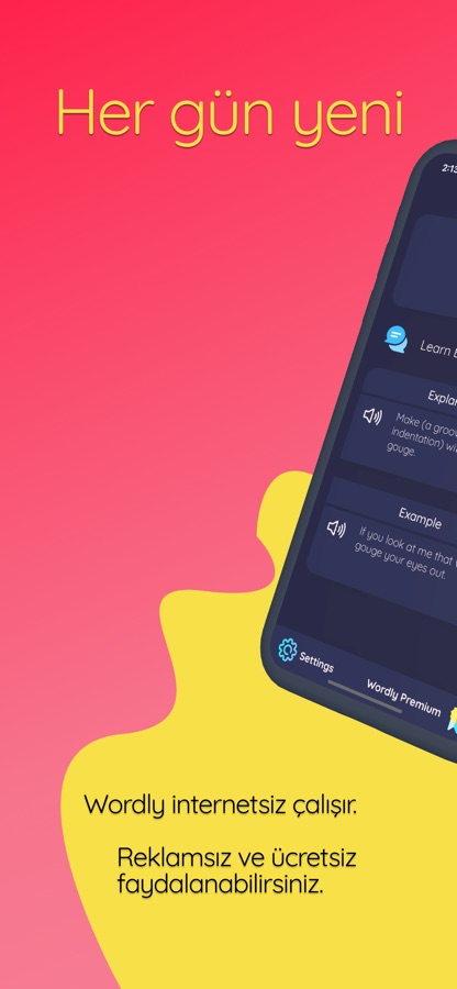 Wordly is a free, no-ads application to learn English words! Do you want to improve your vocabulary and can’t you memorize English words? Here is the application you need! These vocabulary flash cards and English Word Games will make you learn English faster. From now on, you will not have difficulty in memorizing words. Download “Wordly” for free, choose your English Level. Everyday, Wordly sends you an English word to learn. Then like an assistant, Wordly, will regularly remind you the English word, till you memorize it. On flash cards you can see the meaning and the explanation of the word both with English and Turkish descriptions. You can also listen to the pronunciations.