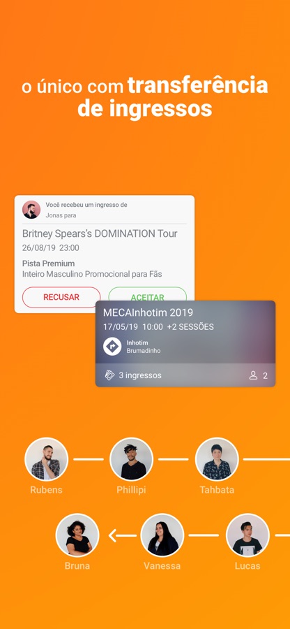 A Ingresse é a única que possui transferência de ingressos. É possível enviar ingressos diretamente para carteiras de amigos através do e-mail. Quem recebe o ingresso precisa aceitar ou recusar, e enquanto o envio fica pendente é possível cancelar a transferência em qualquer momento.