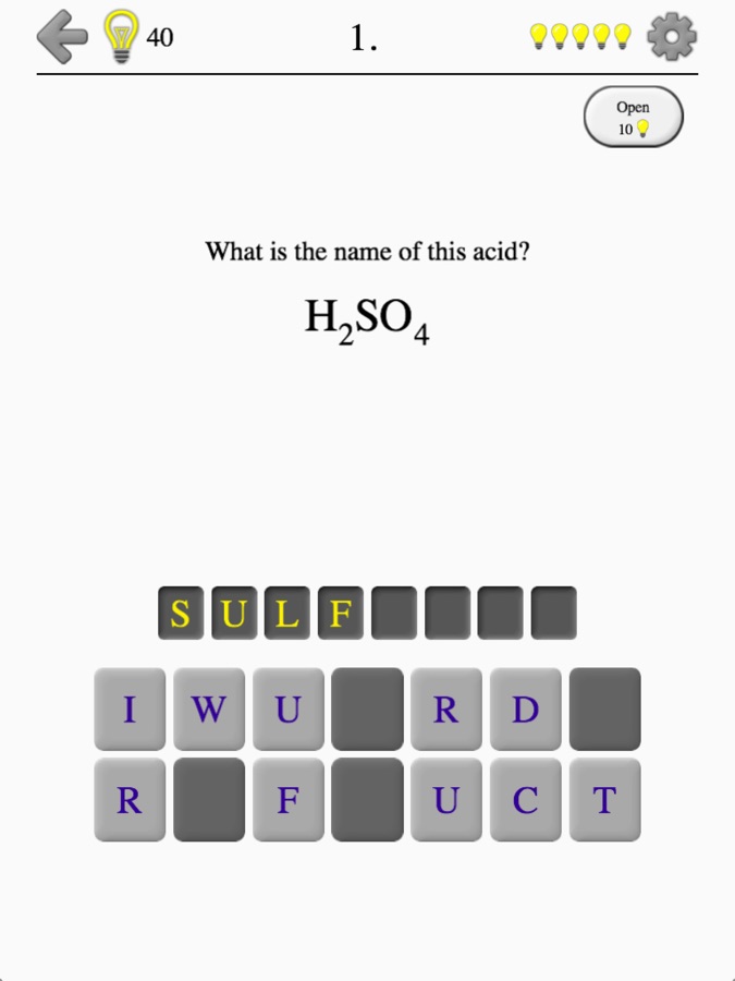 Приложение переведено на 9 языков, включая русский и английский, поэтому Вы можете выучить названия кислот и солей на любом из этих языков.