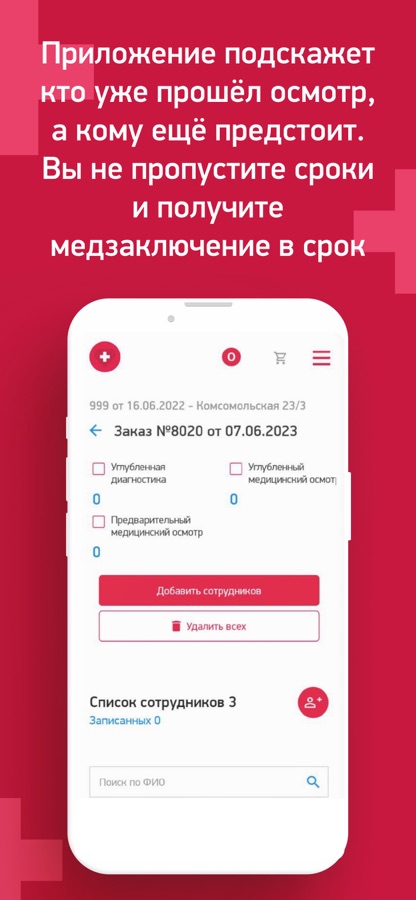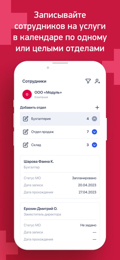 Как организация, вы сможете подписать договор с клиникой, записать сотрудников на медосмотр, видеть кто его прошел, а кто нет. Пациенты получат уведомление с инструкцией куда идти и что делать, а после осмотра получат документы в личный кабинет. Вы тоже увидите мед.заключение и закрывающие документы в кабинете. А еще личный кабинет подберет за вас пункты приказа 29Н и напомнит о сроках периодических медосмотров сотрудников, чтобы вы их не пропустили.