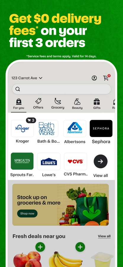 Shop online & get your groceries delivered directly to your door in as fast as 30 minutes. Plus, your first three grocery deliveries are free! And it’s safe—contactless delivery is available.