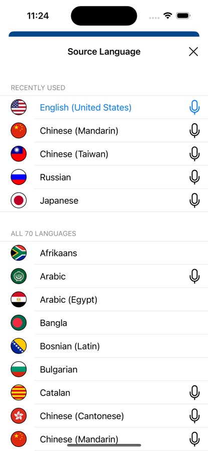 Выберите из более чем 70 языков для перевода и обучения: