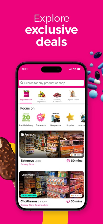 With instashop, you can shop from your favourite local supermarkets, pharmacies, restaurants, bakeries, butcheries, pet shops, and more, all in one place! No more store hopping, we bring them conveniently to your fingertips.