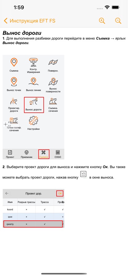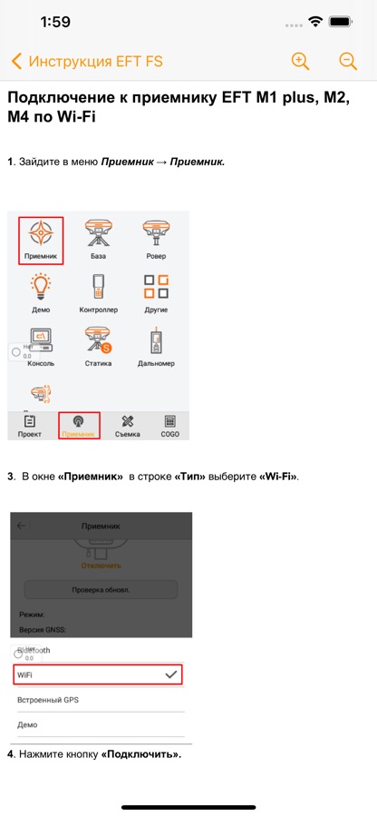 Приложение включает в себя все необходимые инструкции по настройке и работе с программой и оборудованием EFT. Для удобства все инструкции разделены по разделам, а в случае обновления каких-либо инструкций или появления новых, программа самостоятельно сделает обновление при наличии подключения к Интернет. Для лучшего восприятия информации текст инструкции можно увеличивать и уменьшать с помощью клавиш в правом нижнем углу или проводя по экрану двумя пальцами.