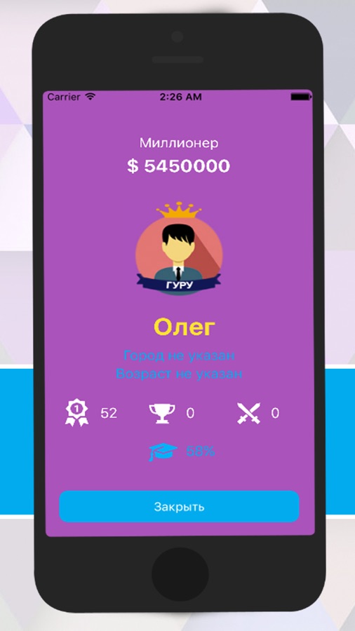 В игре тебя ждет 3 режима игры: быстрая игра, захватывающий чемпионат и битва сильнейших для самых продвинутых. Играй и получай новые статусы, пройди путь от «Новичка» до «Высшего разума». Открывай новые достижения и сравнивай свои результаты с друзьями. Побеждай! И твое имя обязательно украсит наши почетные списки лучших.