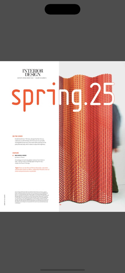 Interior Design magazine is the essential resource for every design professional and enthusiast, on all projects, throughout the entire design process. Interior Design, the design authority, shapes design opinions, while providing boundless inspiration and vital information through compelling coverage of the most groundbreaking projects, products, and people in the industry.