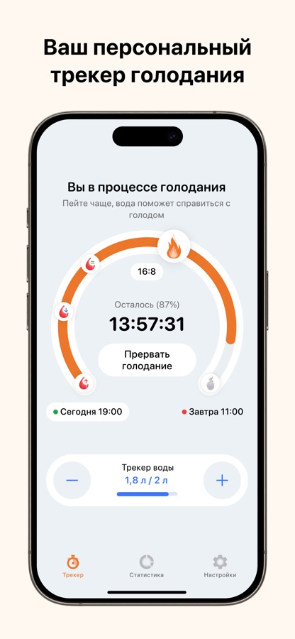 BodyOK: Интервальное голодание — простой и удобный трекер интервального голодания. Интервальное голодание чередует периоды голодания и еды, улучшая метаболизм и способствуя снижению веса. Присоединяйтесь к нам для похудения и улучшения здоровья!