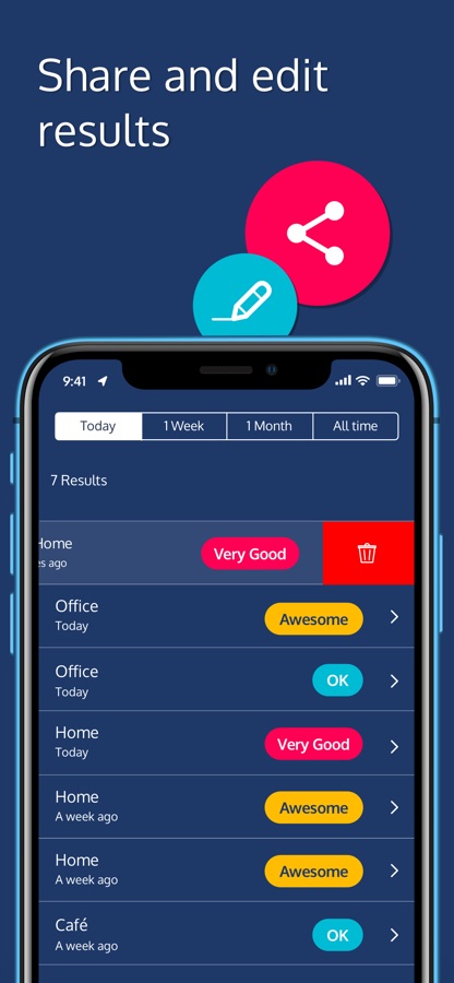 Meteor проводит тесты на любом используемом вами соединении — мобильном (он же сотовый) или Wi-Fi (он же ADSL или широкополосный). Если тест проходит по Wifi, то названием роутера становится ярлык результата, в противном случае сохраняется ярлык “мобильный”.