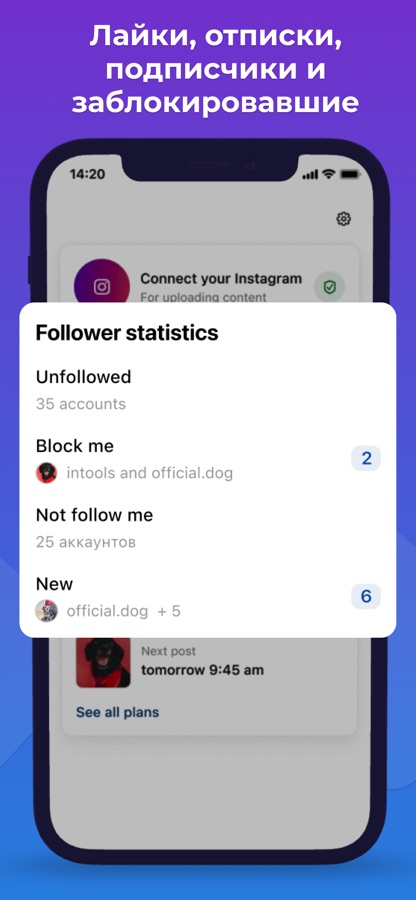 С помощью InTools вы сможете быстро и легко управлять профилем в Инстаграме. Узнайте кто отписался и заблокировал! Планируйте и публикуйте посты вовремя!