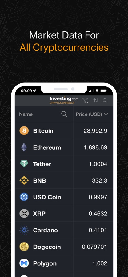 Investing.com предоставляет данные по более чем 1300 криптовалютам!