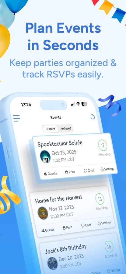 As the event organizer, party planner or wedding planner you will be able to track opened invites, RSVPs, and number of guests attending directly within the app.