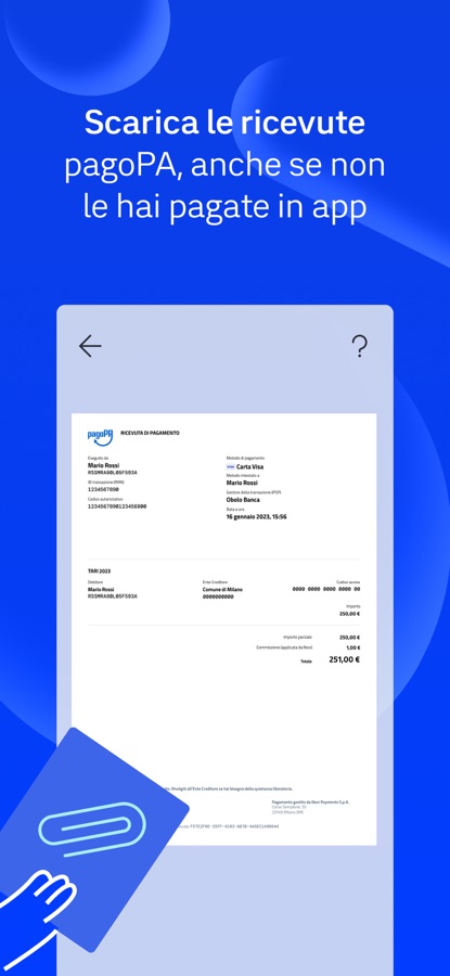 — scaricare le tue ricevute pagoPA, anche se non hai pagato tramite l’app.