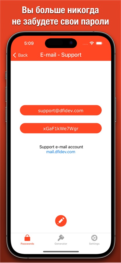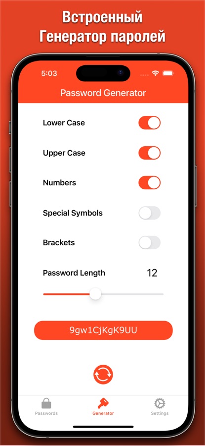 В качестве бонуса, приложение содержит встроенный генератор паролей, который создает уникальные и безопасные пароли для вас! Кроме того, функция быстрого создания пароля позволяет создавать пароль непосредственно при создании новой записи, нажимая всего одну кнопку.