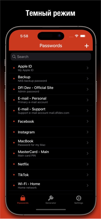 Единственное, что вам нужно запомнить — это ваш Мастер-пароль для запуска приложения. iPassworder также предлагает функцию входа с биометрической аутентификацией с помощью Face ID или Touch ID, что делает доступ к вашим паролям еще более простым и безопасным.