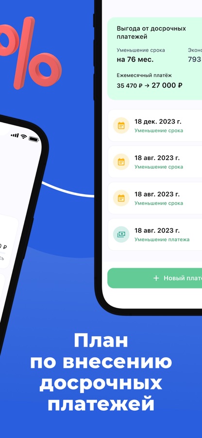 – Возможность добавления досрочных платежей для ускоренного погашения