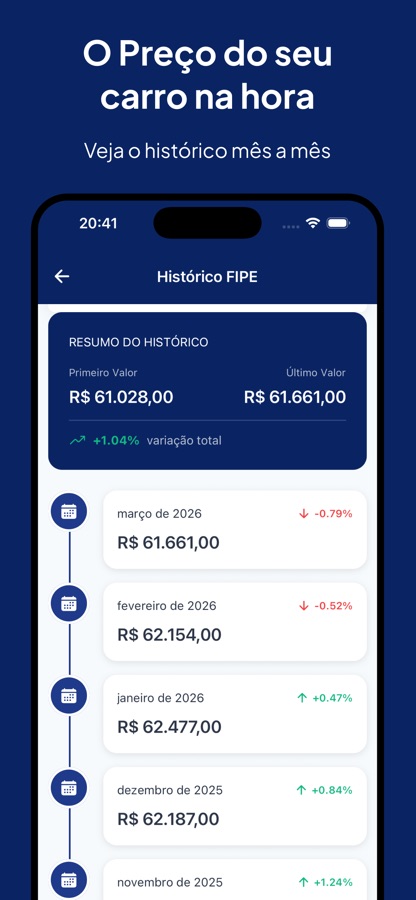 • Veja o histórico do valor do seu carro