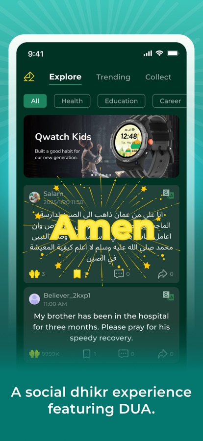 Приложение IQIBLA Life — ваш ежедневный спутник, помогающий вам совершать акты поклонения с легкостью и почтением. Приложение не только интегрируется с нашими умными продуктами, такими как Zikr Ring и Qibla Watch, но и функционирует как отдельное приложение, содержащее время молитв, указания Киблы и многие другие функции, которые позволят вам приблизиться к Аллаху Всевышнему наилучшим образом.