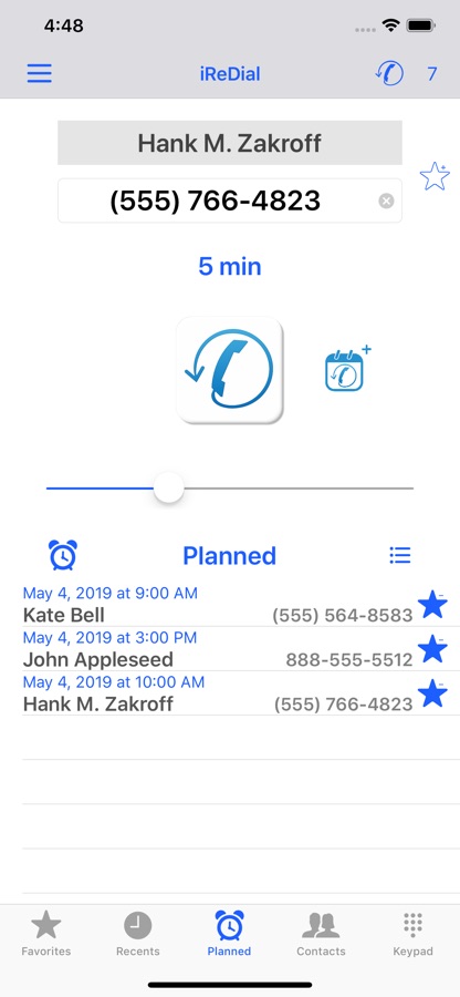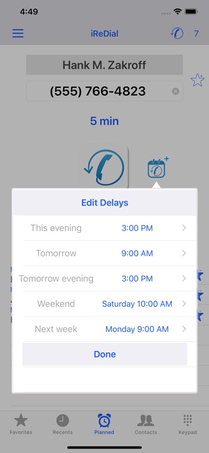 NOTE: iReDial is NOT an automatic dialer. It simply notifies you of the phone calls you decided to postpone. At the notification, you decide whether to call.