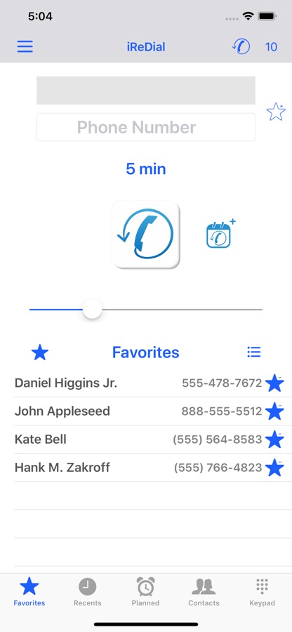 With iReDial all you need to do is type the phone number and set when you want to call.