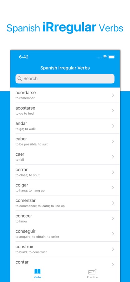 Это приложение является простым и абсолютно бесплатным способом изучения неправильных глаголов испанского языка и их спряжений. Здесь вы найдёте множество неправильных глаголов и удобную систему для их изучения, построенную на базе метода интервального повторения.