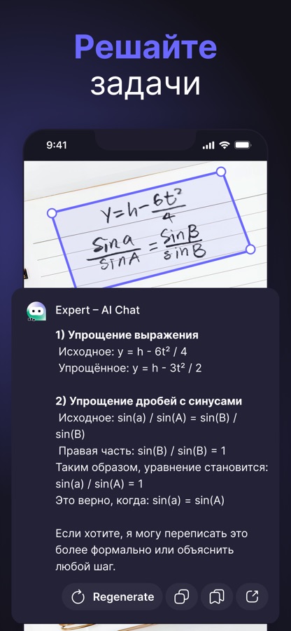 Общайтесь в чате, пишите, анализируйте, решайте математические задачи, распознавайте изображения с камеры и переключайтесь между ведущими моделями ИИ — всё в одном простом приложении.