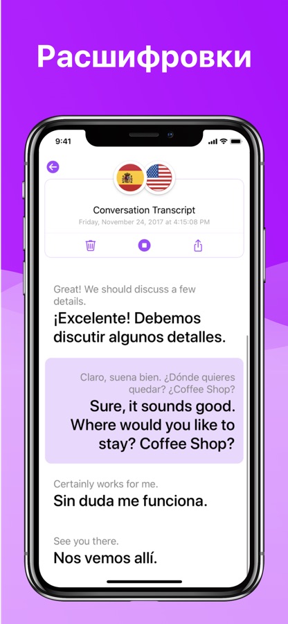 Нашему приложению уже доверяют миллионы людей, а новая версия iTranslate Voice с обновленным дизайном обеспечит безупречный голосовой перевод на 40 и более языков. Наш разговорник объемом в 250 и более фраз призван помочь в любой ситуации. Функция расшифровки позволит вам за пару секунд экспортировать свою беседу или поделиться ею.