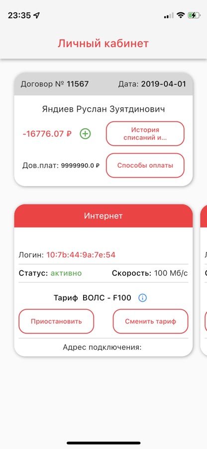 Приложение для управления услугами провайдера ИТТ