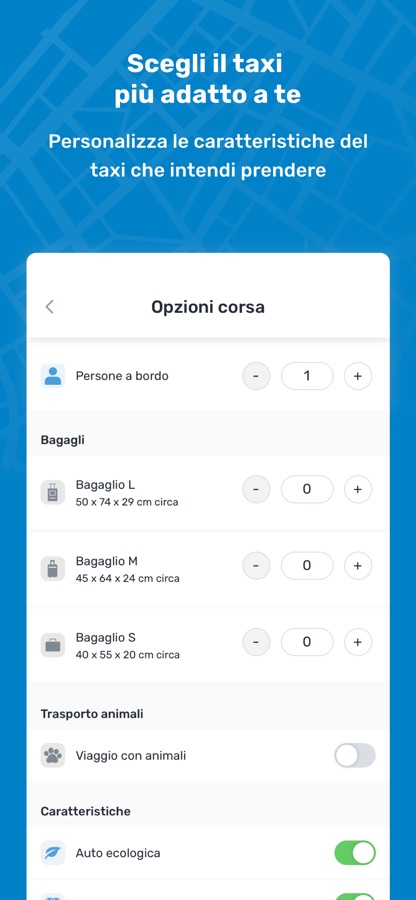 — Completa: indicaci le tue esigenze particolari, Ti invieremo il taxi più adatto alle Tue esigenze.