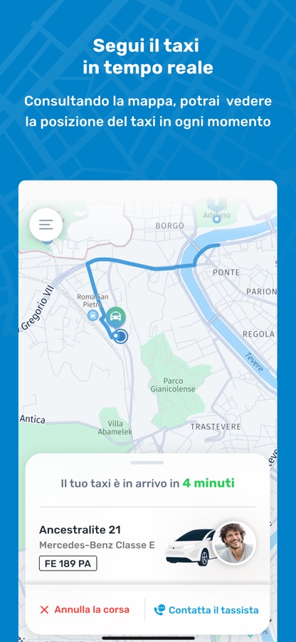 — Facile e veloce: tramite geolocalizzazione, chiedi subito il taxi ovunque sei o prenotalo in anticipo.