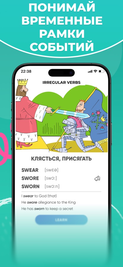 187 неправильных глаголов, озвученных в Англии, эффективные тренажеры, авторские иллюстрации, отслеживание прогресса обучения и даже игра, позволяющая закрепить изученное!