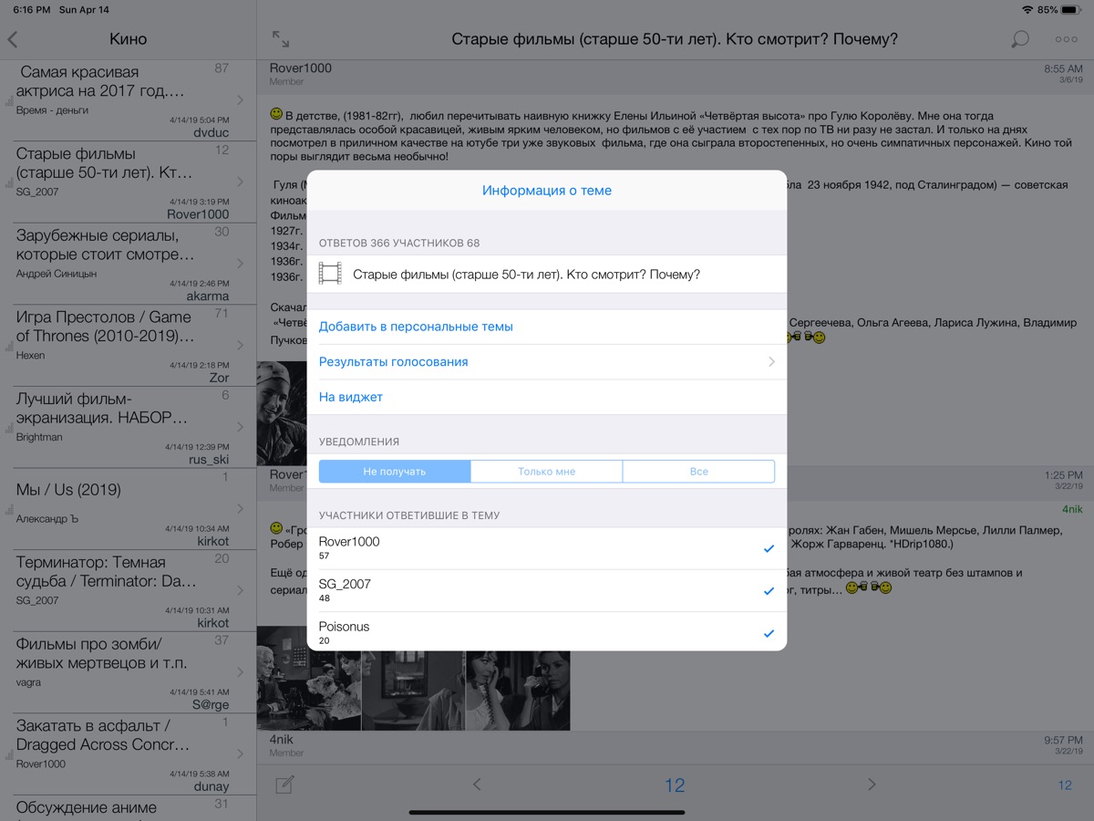 — добавление темы в избранное;