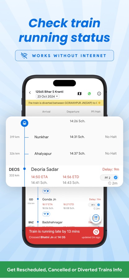 ● Know your train’s location in real-time, without Internet, with offline running status