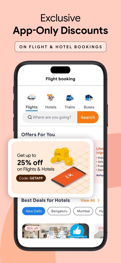 ● Flight deals & offers: Save money on flight booking with top banks & UPI offers, CRED Pay, EMI, net banking, wallet & credit/debit cards.