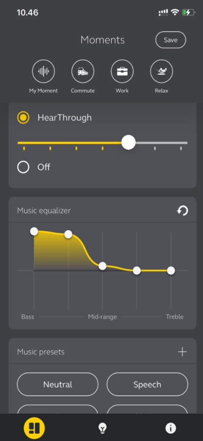 Поэтому мы создали «Моменты» — предустановленные настройки звука, которые подходят к каждому моменту вашего дня. Мы постоянно обновляем и улучшаем «Моменты», но их также можно вручную настраивать под собственные потребности.