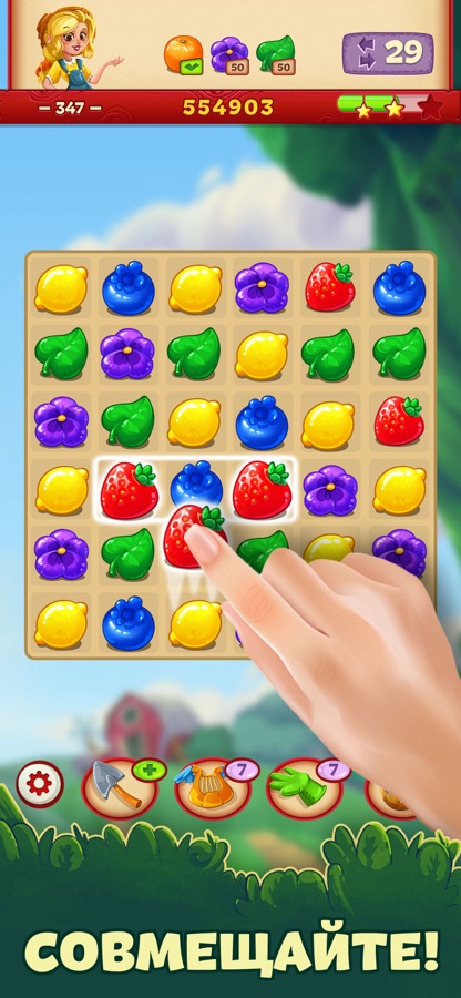 Совмещайте 3 фрукта или овоща подряд, чтобы ремонтировать и проектировать ферму, собирать урожай и выигрывать захватывающие уровни! Выращивайте урожай, чтобы получать ежедневные награды.