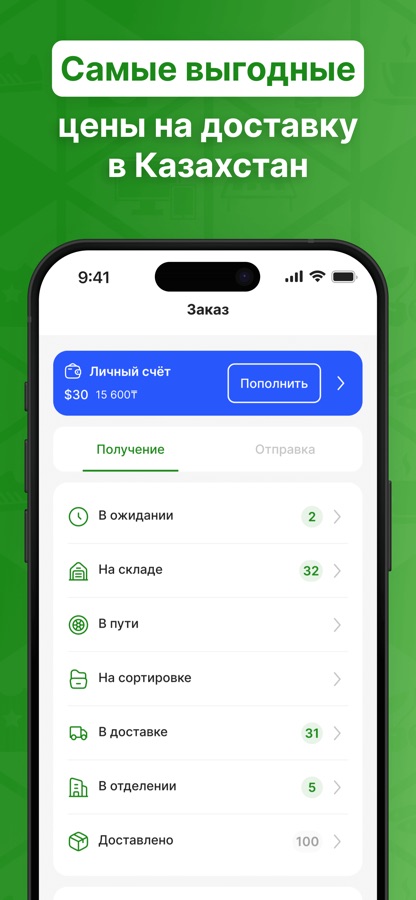 1. App дан тасымал нөмері арқылы өз тауарыңыздың қай жерге жеткенін тексерып біле аласыз