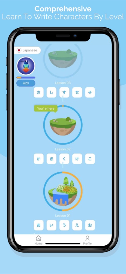 Используя различные мини-игры, Вы сможете изучать буквы Японский, используя всего лишь это мобильное приложение!