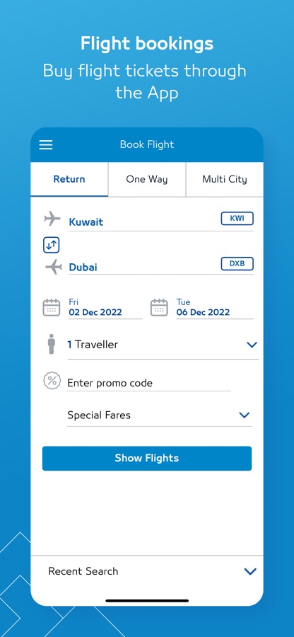 1. Flight bookings: Buy flight tickets through the App.