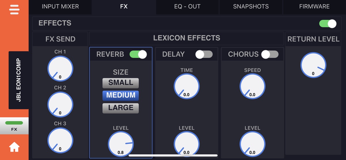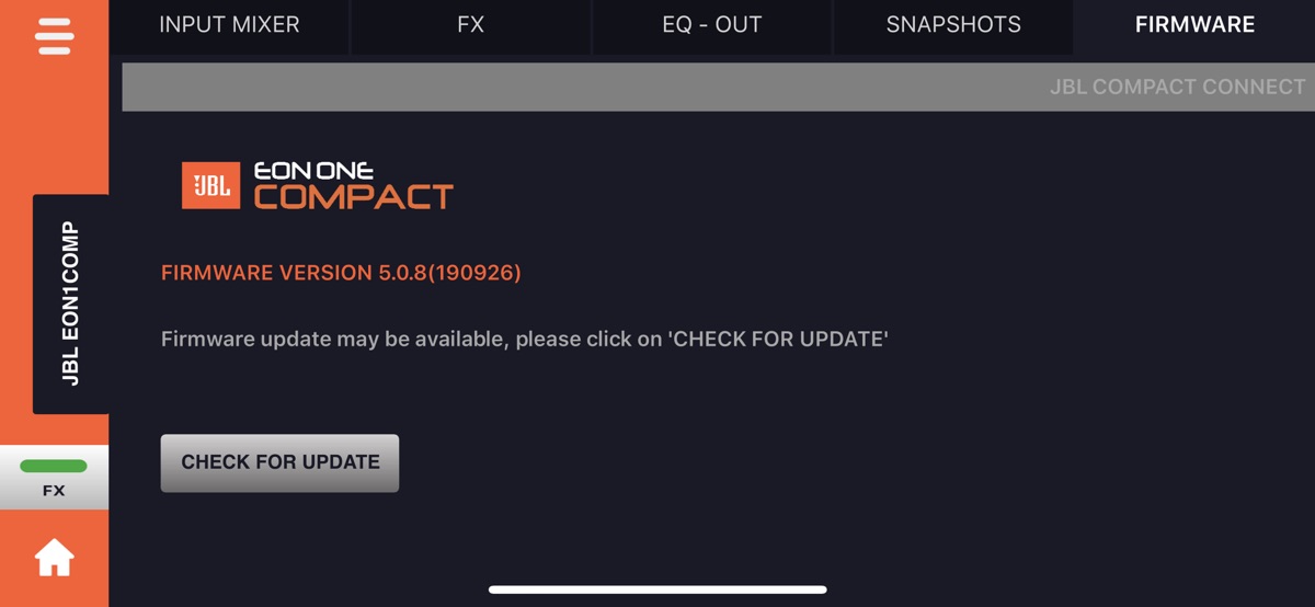 The JBL Compact Connect is an easy-to-use application for tablets and mobile devices that is designed to offer complete control of up to four JBL EON ONE Compact PA speakers at a time. Featuring Bluetooth audio control, the application gives you free reign over all of the EON ONE Compact’s setting and capabilities. From controlling the speaker’s four-channel digital mixer, to adjusting effects, saving and recalling presets and much more, JBL Compact Connect allows you to easily tailor your speaker to fit your application. Plus, JBL Compact Connect directly links to the speaker’s hardware, so any change you make from the application will reflect on your EON ONE Compact’s LED indicators, including volume levels. In addition to dialing in the perfect sound, the JBL Compact Connect application allows you to update each speaker’s firmware.