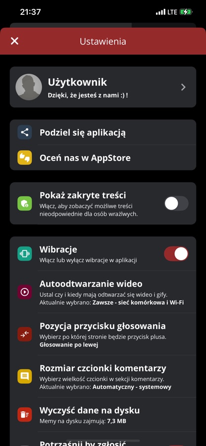 — Ustawienia wielkości tekstu komentarzy, wibracji, auto odtwarzania wideo, pozycji przycisku głosowania i więcej