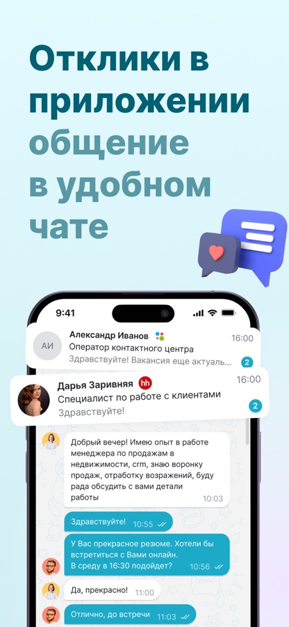 Все отклики приходят прямо в приложение. Общайтесь с кандидатами в чате и быстро находите подходящих сотрудников.