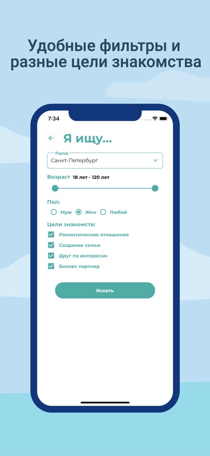 В приложении удобные фильтры и разные цели знакомства: