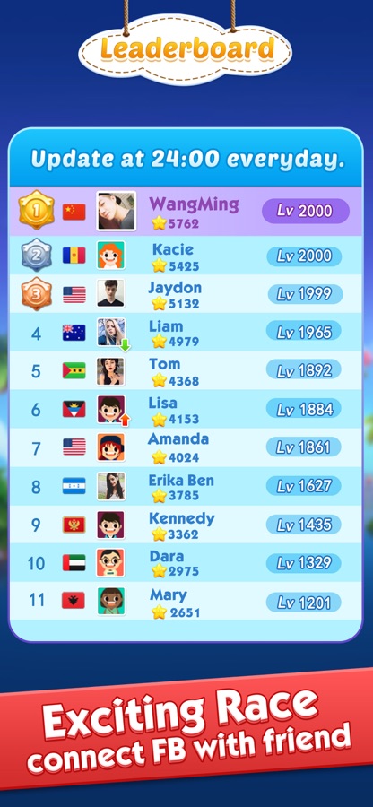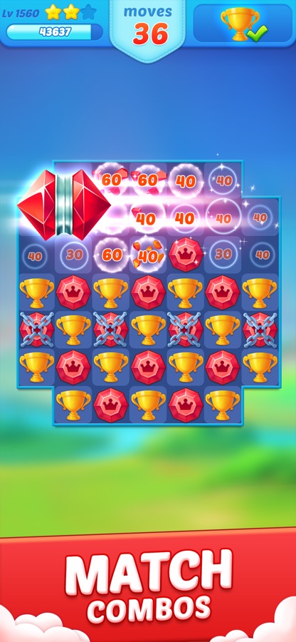 Более 2000 тщательно сбалансированных уровней, классический геймплей match3, соревнования с друзьями по всему земному шару.
