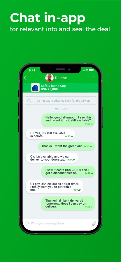 Use Jiji Chat to communicate and discuss all product details or delivery options conveniently;