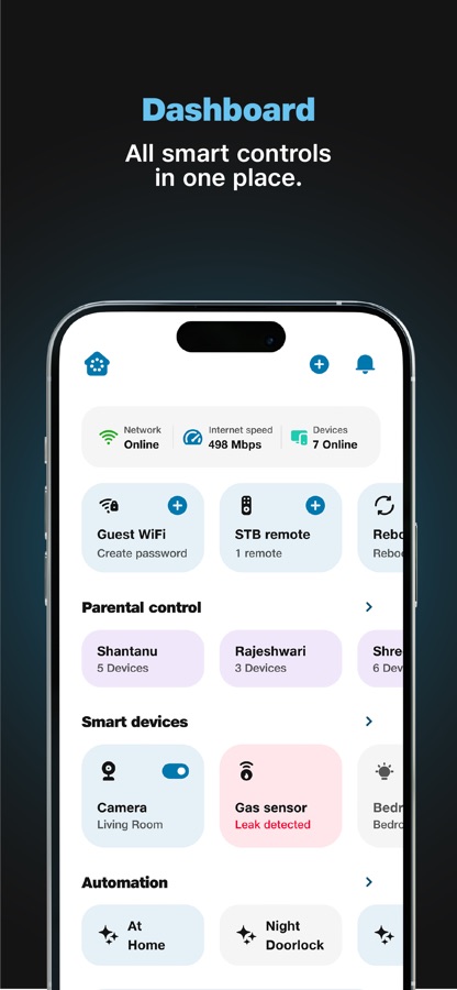 Experience unmatched convenience and seamless connectivity with the JioHome app. Control smart devices, enhance home automation, and optimize your Wi-Fi experience effortlessly. Enjoy safe internet usage with parental controls. With features like a user-friendly soft remote and gamepad functionalities, JioHome redefines digital living.