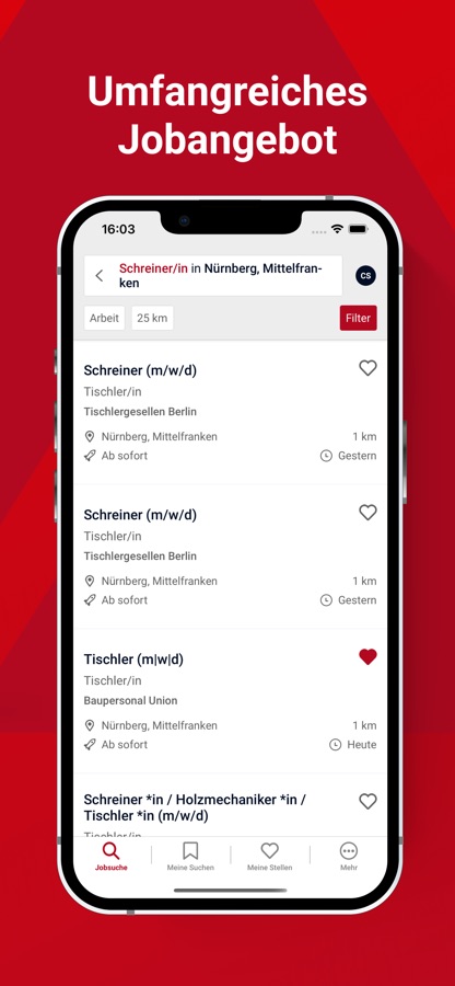 Suchen Sie gezielt nach einem Beruf oder geben Sie einen beliebigen Begriff ein. Nutzen Sie die Standorterkennung oder geben den gewünschten Ort und Umkreis ein. Filtern und sortieren Sie Ihr Suchergebnis individuell.
