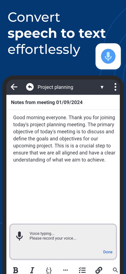 • transcribe speech to note,