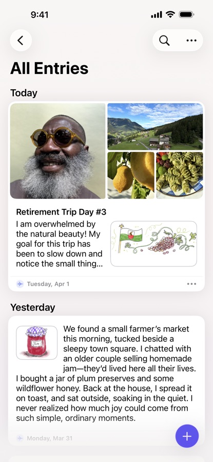 Уделите время размышлениям о том, как прошел Ваш день. Пишите в дневник о повседневных и особых событиях своей жизни, добавляйте к записям фото, видео, аудио, геопозиции, записи о настроении и другой контент. Предложения дневника помогут Вам вспомнить, что произошло в течение дня. Добавьте предложение в дневник, и Вам не нужно будет начинать новую запись с чистого листа. Вы можете создать несколько дневников для разных аспектов жизни, просматривать статистику, отслеживать свои цели и периоды ведения дневника, а также синхронизировать дневник на iPhone, iPad и Mac через iCloud.