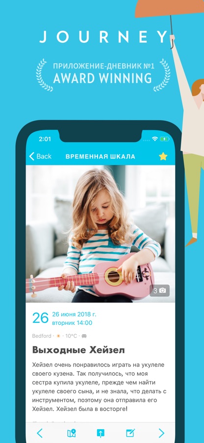 Встаньте на путь самосовершенствования, повышая качество жизни, любви и здоровья. Фиксируйте события, удачи и маленькие секреты вашей жизни, и вспоминайте эти прекрасные моменты вместе с Journey. Нам доверяют миллионы пользователей! Journey — идеальный компаньон, который сохранит ваши личные воспоминания на всю жизнь.